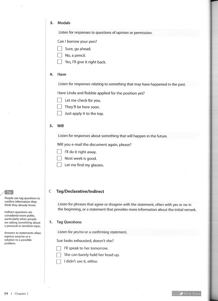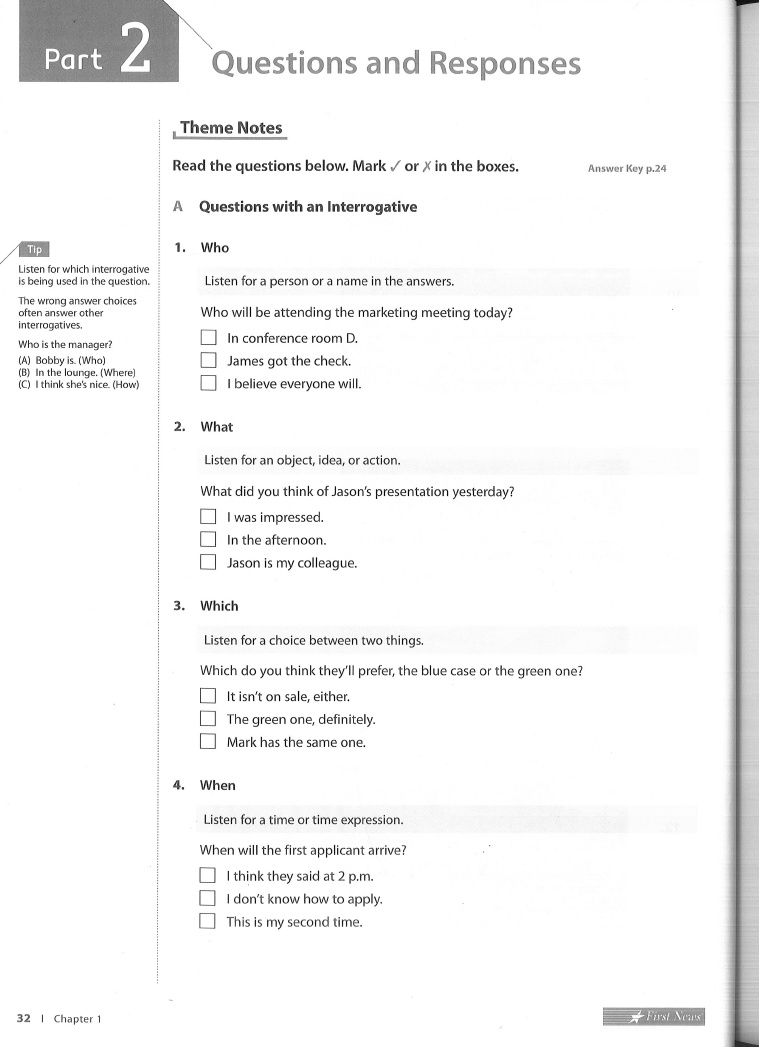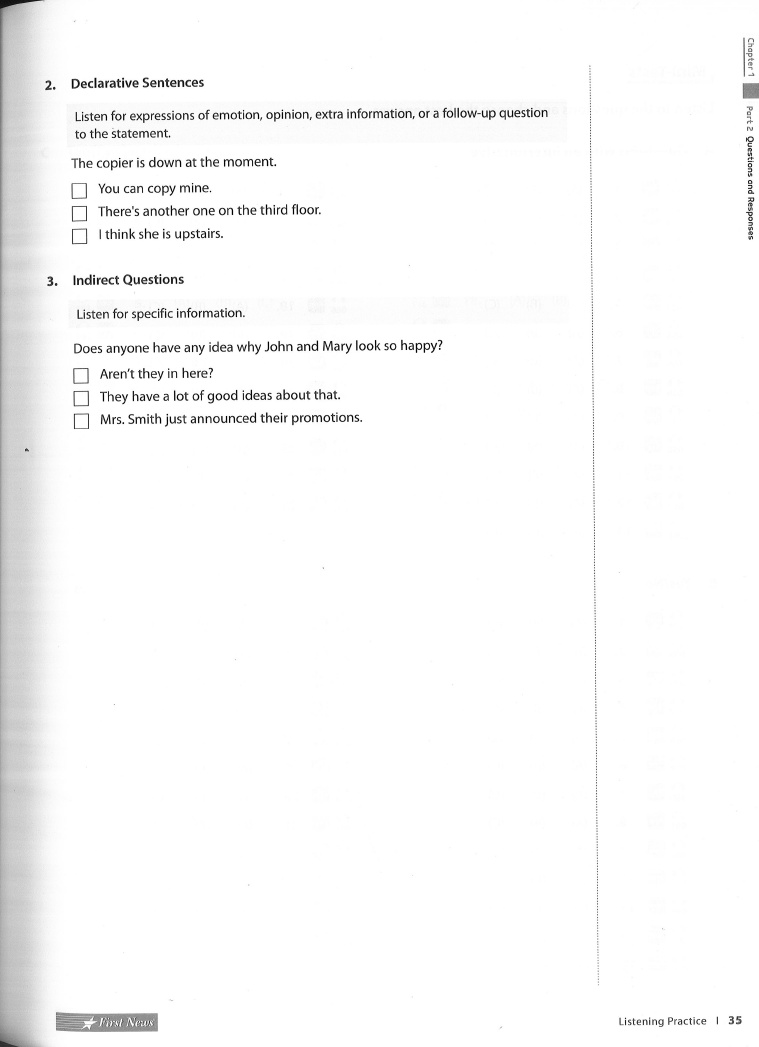 - Chapter 1 Listening Practice Part 2 Questions and Responses