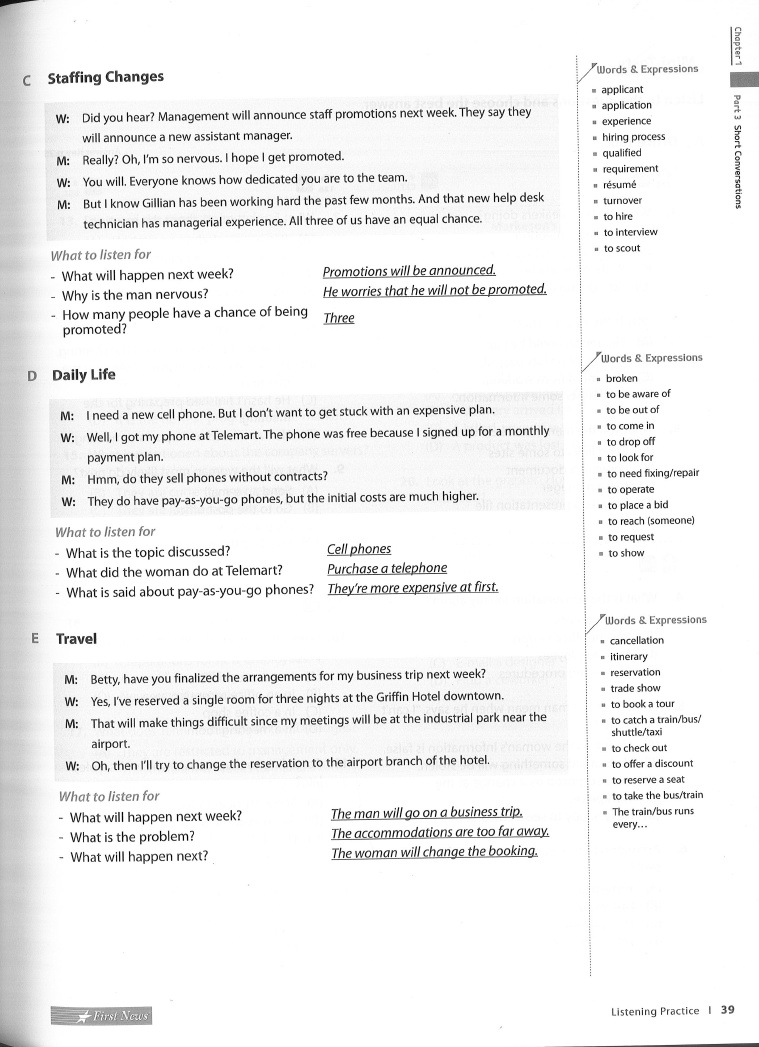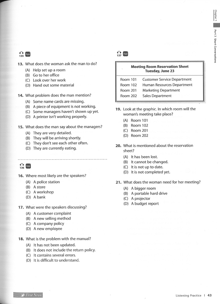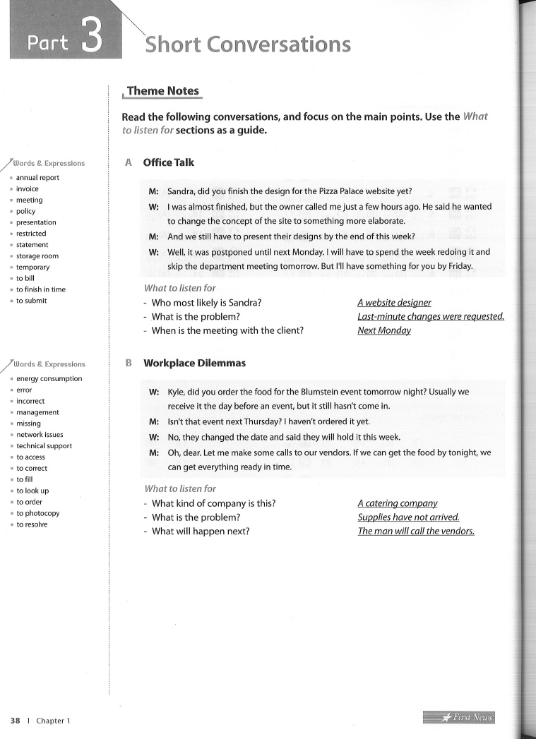 - Chapter 1 Listening Practice Part 3 Short Conversations