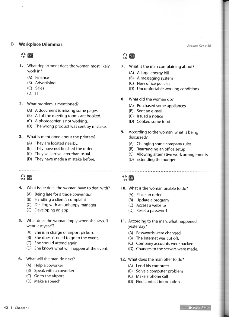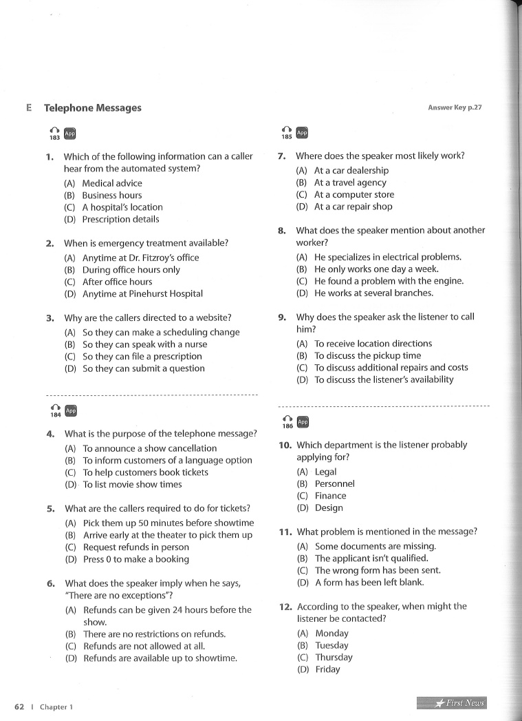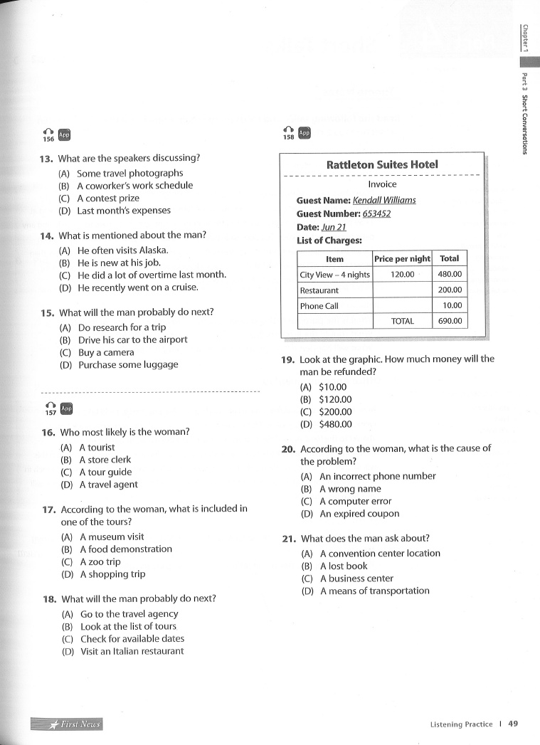 Chapter 1 Listening Practice Part 3 Short Conversations