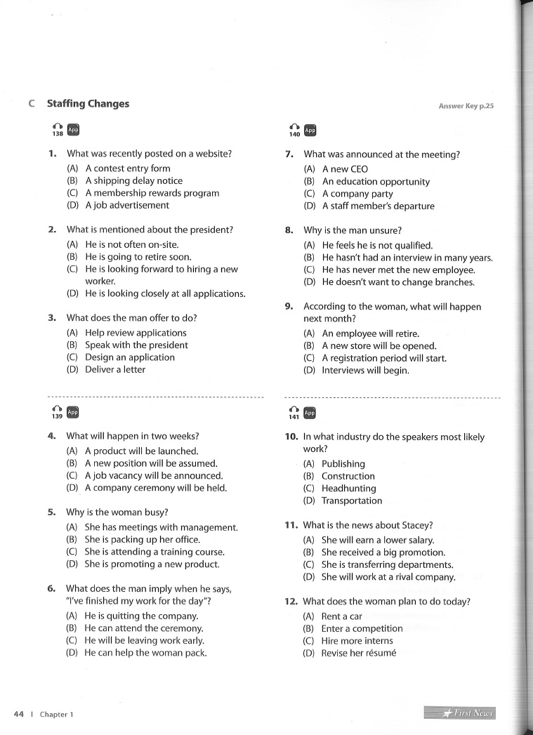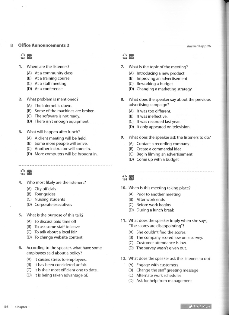 Chapter 1 Listening Practice Part 2 Questions and Responses