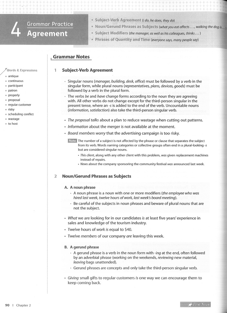 - Chapter 2 Grammar Practice 4 Agreement