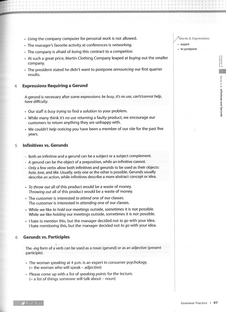 Chapter 2 Grammar Practice 5 Infinitives and Gerunds