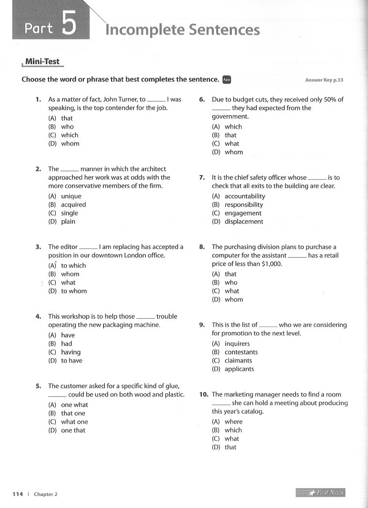 | Book: | Taking The TOEIC Skills and Strategies 2 |