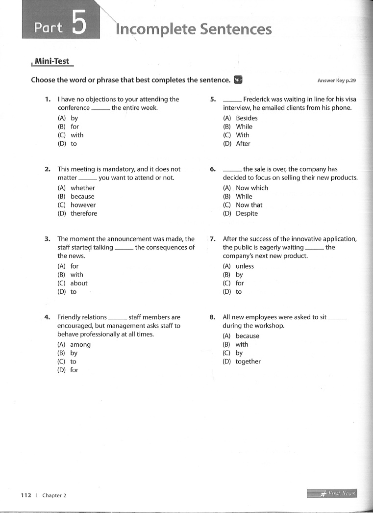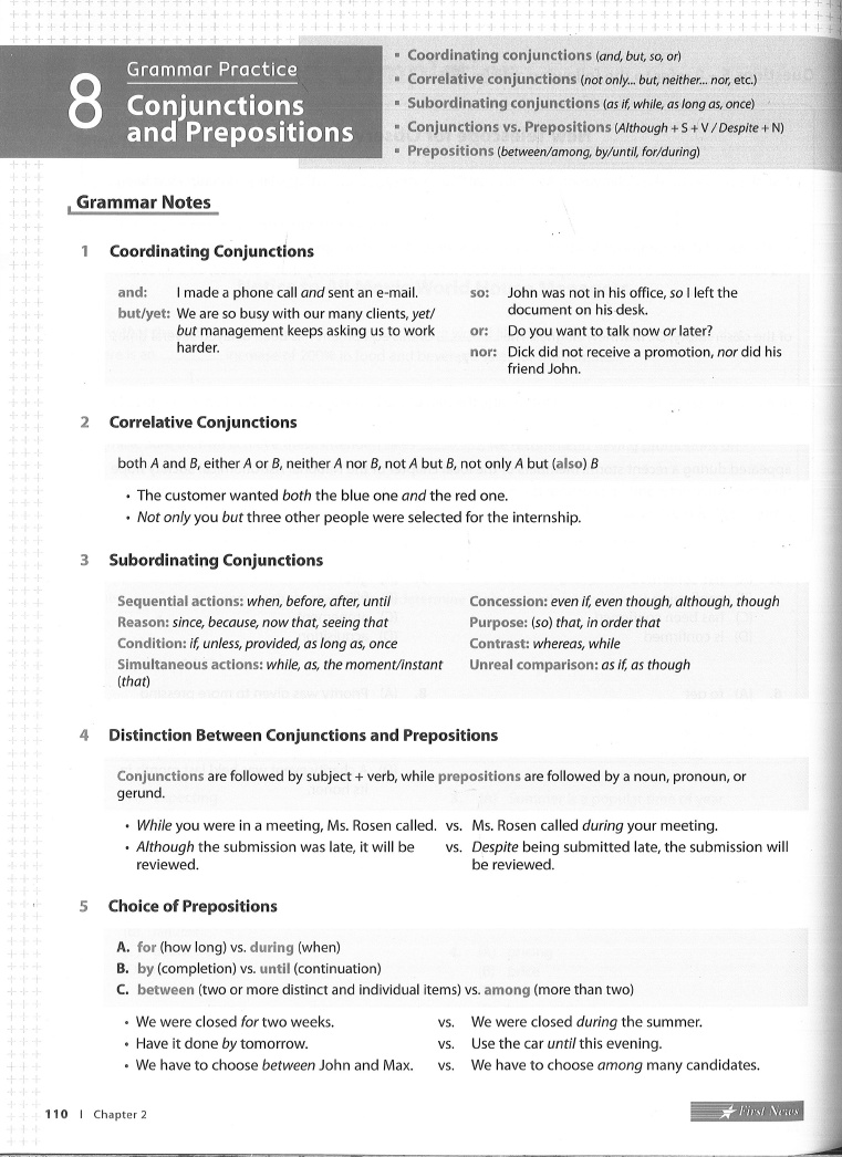 Chapter 2 Grammar Practice 8 Conjunctions and Prepositions